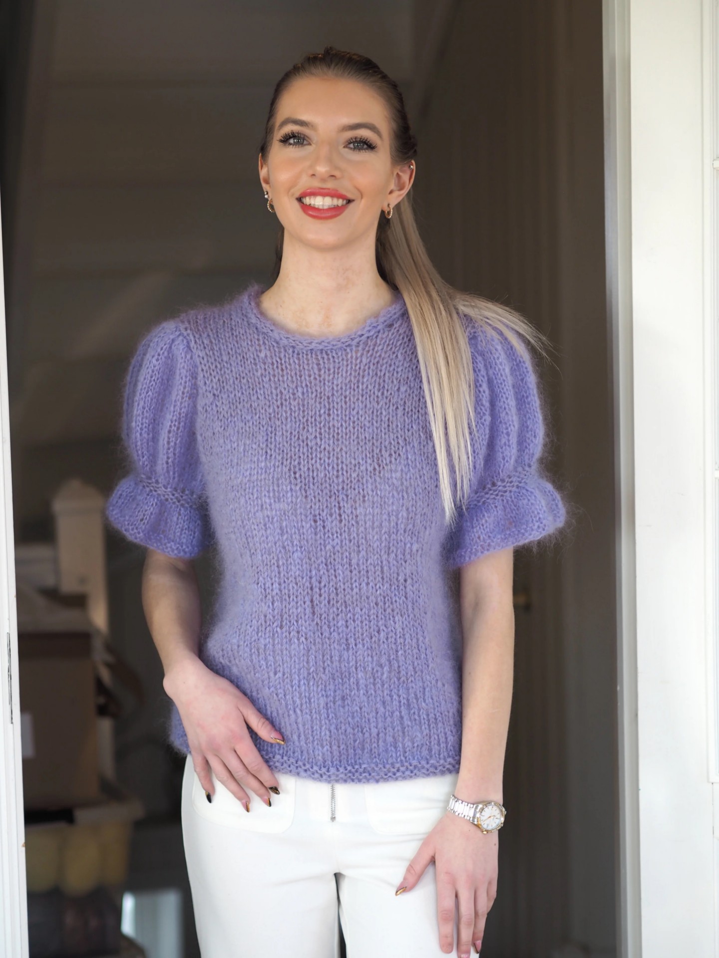 Mönster på Norska: STØRRELSER : S (M) L (XL) PLAGGETS MÅL Overvidde: 88 (96) 104 (112) cm Hel lengde: ca. 52 (54) 57 (59) cm Ermelengde: ca. 12 cm alle str. GARN Bella Color fra permin 75 % Kid Mohair, 20 % ull, 5% Polyamid, 50 g = 145 m. VIP fra Lana Gatto, 80 Extra fine Merinoull, 20% Kashmir, 50 g = 200 m GARNFORBRUK Bella Color farge nr 883150 150 (150) 200 (200) g VIP farge nr 1001 100 (100) 150 (150) PINNEFORSLAG Rundpinne 80 cm og 40 cm nr 9. Rundpinne 80 cm nr 6, 7 og 8.