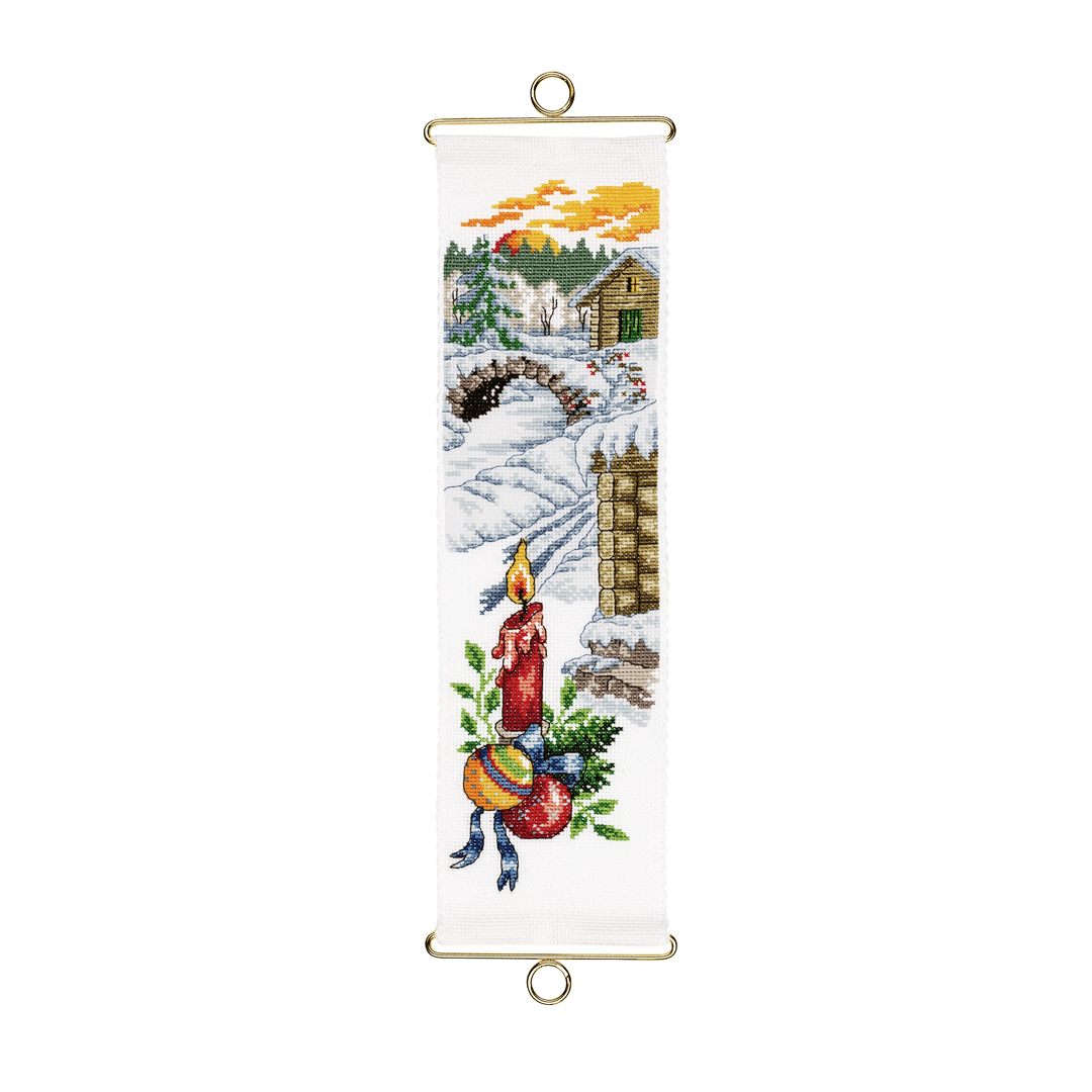 I broderikitet ingår: Mönster Aida 6 rutor/cm (14ct) DMC-garn i rätt färger och mängd Broderinål Färdigt mått: Ca 10x36 cm Beslag ingår ej