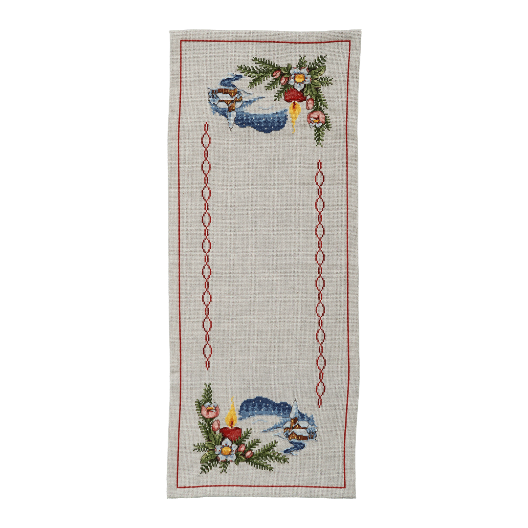 I broderikitet ingår: Mönster Aida 5,4 rutor/cm DMC-garn i rätt färger och mängd Broderinål Färdigt mått: Ca 27x65 cm