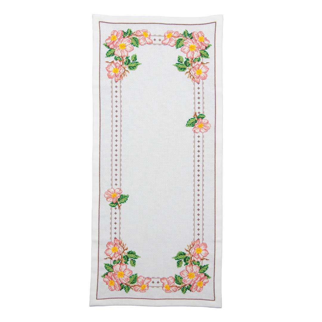 I broderikitet ingår: Mönster Aidaväv 5,4 rutor/cm DMC-garn i rätt färger och mängd Broderinål Färdigt mått: Ca 29x66 cm