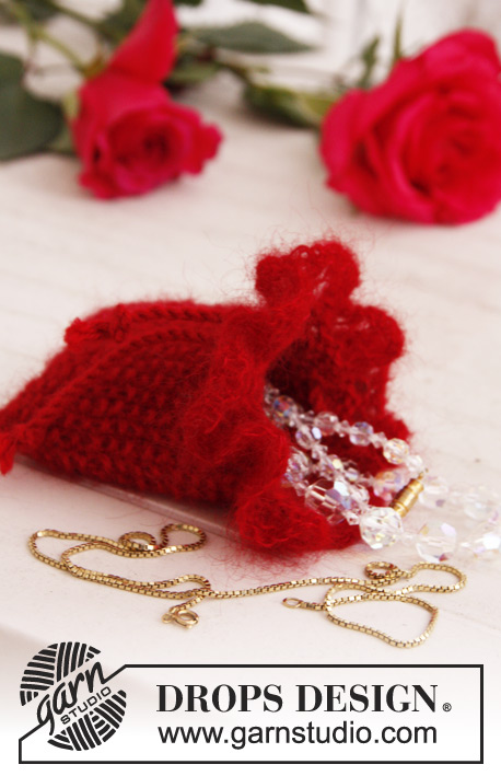 Stickad DROPS smyckespåse i “Alpaca” och ”Kid-Silk”. DROPS Extra 0-759
