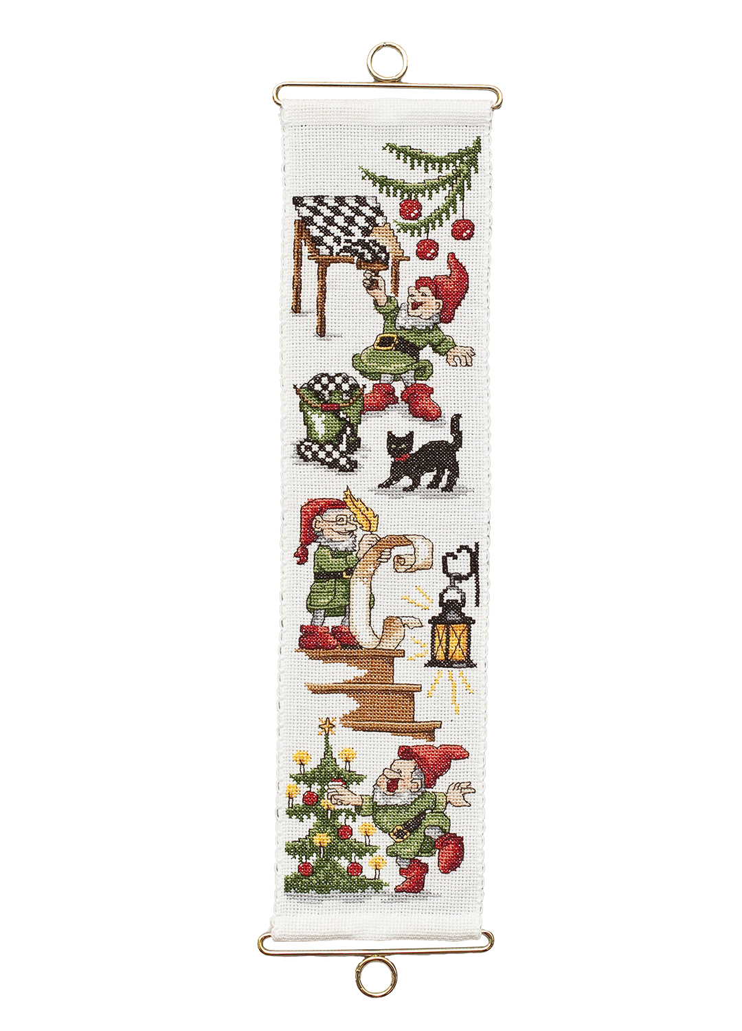 I broderikitet ingår: Mönster Aida 6 rutor/cm DMC-garn i rätt färger och mängd Broderinål Färdigt mått: Ca 10x39 cm Beslag ingår ej