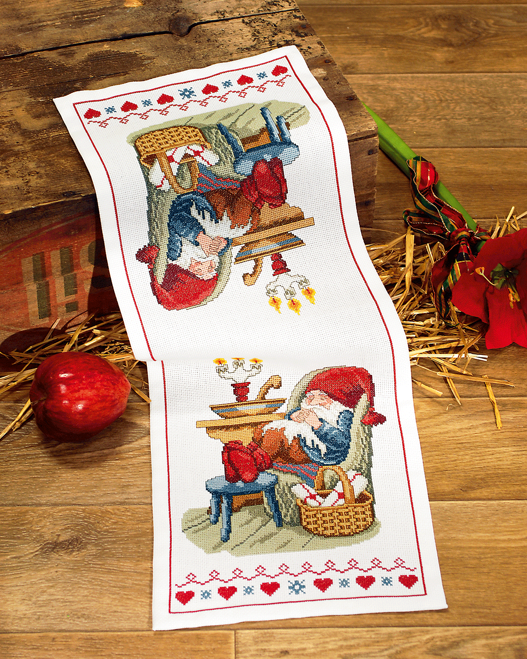 I broderikitet ingår: Mönster Aida 5,4rutor/cm (14ct) DMC-garn i rätt färger och mängd Broderinål Färdigt mått: Ca 25x60 cm
